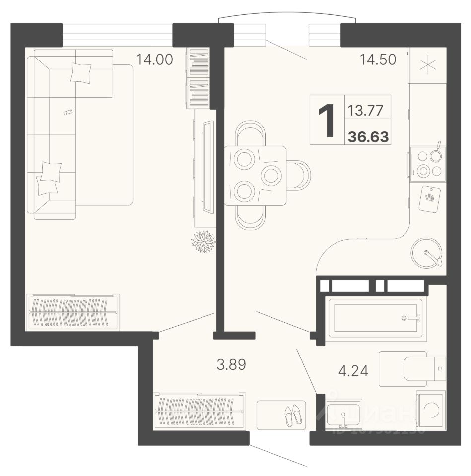 Общая площадь36,63 м²