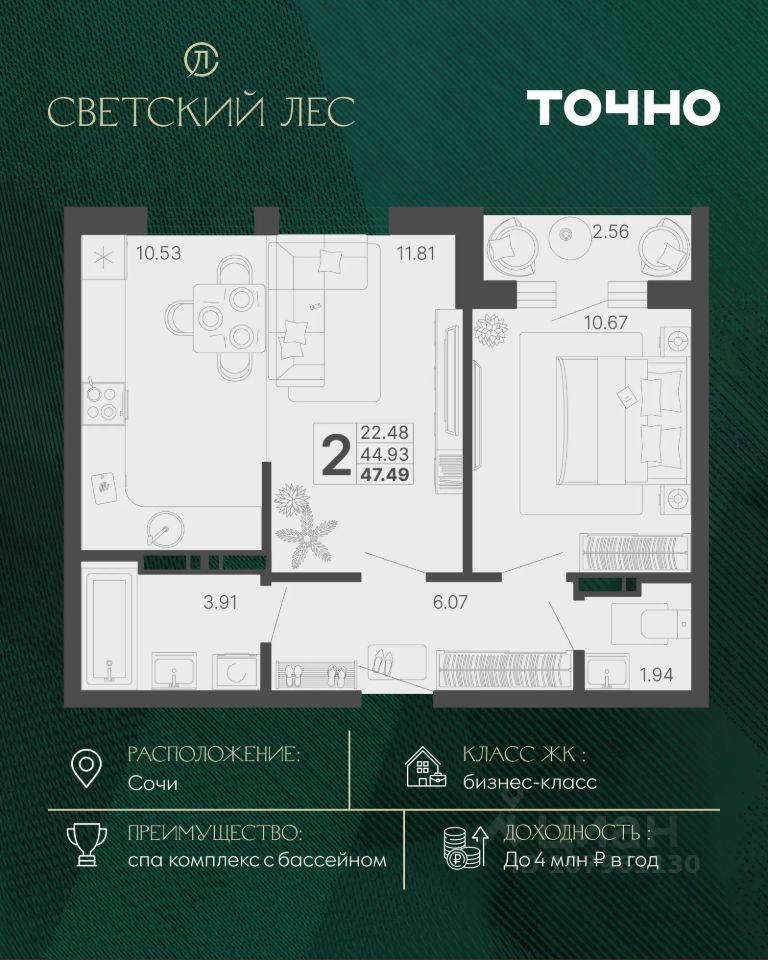 ЖК "Светский лес" — эксклюзивный жилой проект бизнес-класса в Сочи. Это остров цивилизации и технологий в окружении дикой природы национального парка с богатой инфраструктурой, наполненной различными сценариями премиального отдыха и жизни. Общественное пространство жилого комплекса включает в себя прогулочные зоны, спа-комплекс с круглогодичным бассейном, детские и спортивные площадки, велодорожки, собственную набережную реки Сочи, торговую галерею с супермаркетами и ресторанами, а также инновационную школу на 1510 мест и детский сад на 510 мест. Квартира в ЖК "Светский лес" — идеальный вариант как для жизни у моря, так и для инвестиций. Удобный сервис доверительного управления позволит легко зарабатывать на недвижимости в ЖК "Светский лес" до 4 млн. руб. в год.*