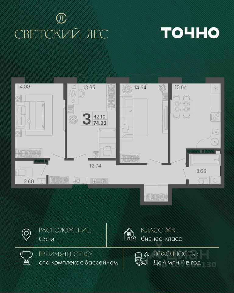 ЖК "Светский лес" — эксклюзивный жилой проект бизнес-класса в Сочи. Это остров цивилизации и технологий в окружении дикой природы национального парка с богатой инфраструктурой, наполненной различными сценариями премиального отдыха и жизни. Общественное пространство жилого комплекса включает в себя прогулочные зоны, спа-комплекс с круглогодичным бассейном, детские и спортивные площадки, велодорожки, собственную набережную реки Сочи, торговую галерею с супермаркетами и ресторанами, а также инновационную школу на 1510 мест и детский сад на 510 мест. Квартира в ЖК "Светский лес" — идеальный вариант как для жизни у моря, так и для инвестиций. Удобный сервис доверительного управления позволит легко зарабатывать на недвижимости в ЖК "Светский лес" до 4 млн. руб. в год.*