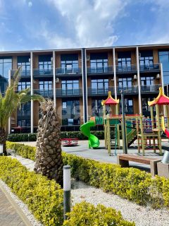 Для удобства жителей есть гостевой и подземный паркинг, а также два подогреваемых и круглогодичных бассейна. В комплексе есть все необходимые коммуникации, а до пляжа всего 850 метров, а до станции РЖД — 900 метров.