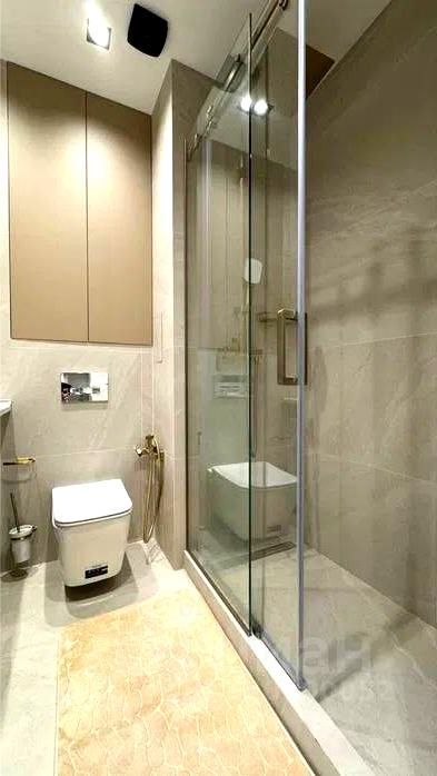 Стильный санузел с душевой кабиной и качественной сантехникой