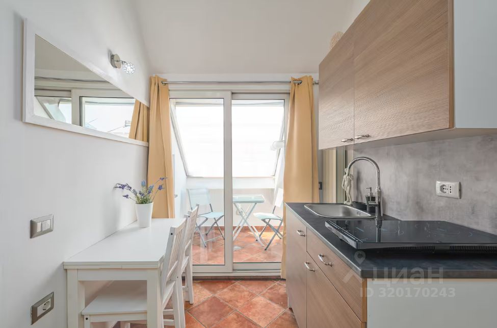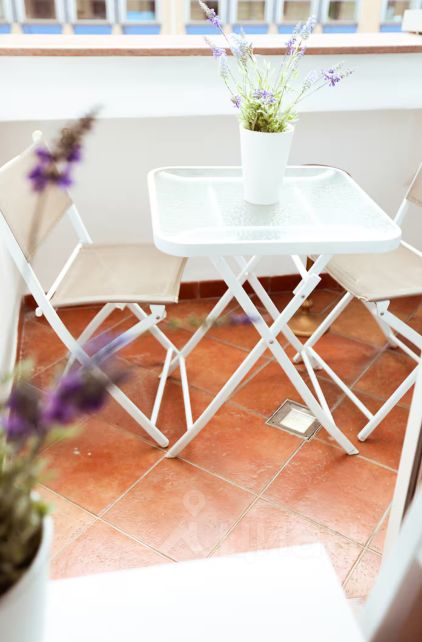 - Чтобы наслаждаться видом, в апартаменте оборудован небольшой балкончик с видом на город, столом и стульями для отдыха в полном уединении.