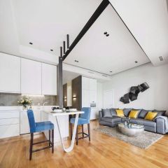 В квартире выполнен ремонт из качественных материалов по индивидуальному дизайн проекту, есть мебель и техника.