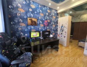 Кухня-гостиная (15, 5 кв.м) и большая комната (23 кв.м) разделена на две зоны: спальню и детскую, лоджия (7, 1 кв.м).