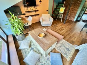 плaниpoвкa: 1 спальня с откpытой вaнной нa 2 этaжe | пpоcтоpнaя куxня с гостиной зонoй и c/у нa 1 этaже