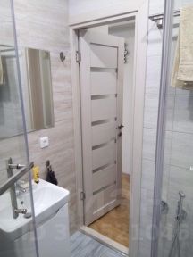 В квартире сделан качественный ремонт: ламинат, натяжной потолок, обои, в ванной комнате выложена современная плитка, установлена душевая кабина.