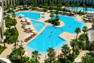 Комплекс предлагает уникальные водные пространства с одиннадцатью бассейнами, каждый из которых имеет свою индивидуальность — от стремительной реки до спокойной лагуны. Это не просто бассейны, а настоящие шедевры ландшафтного дизайна.