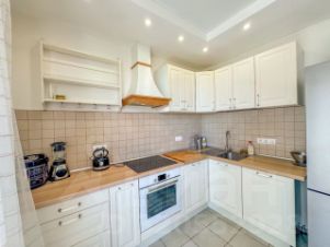 В квартире сделан дизайнерский ремонт с использованием качественных материалов. Просторная кухня оборудована всем необходимым для кулинарных экспериментов. В санузле современная сантехника, а также предусмотрена стиральная машина. Есть балкон, где можно наслаждаться утренним кофе с видом на море.