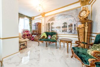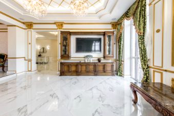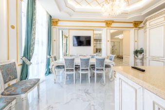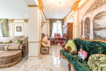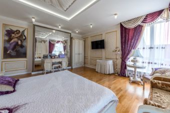 Внутренняя отделка дизайнерский ремонт в классическом стиле. Здесь на самом деле продумана каждая деталь: от отделочных материалов до элементов декора. Даже текстиль дизайнеры подбирали в полном соответствии с общей концепцией.