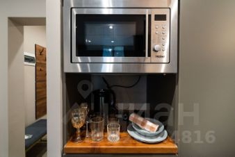 Мини-кухня (холодильник, микроволновка, посуда)