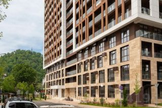 Она находится в комплексе бизнес-класса Аллея Парк, который расположен в живописном и экологически чистом районе Сочи. На территории комплекса имеется благоустроенная зона с зелеными насаждениями и детскими игровыми площадками. Создана безопасная закрытая территория с круглосуточным видеонаблюдением и охраной.