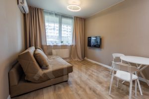 Хорошая чистая новая квартира, с качественным ремонтом. Однотонные обои цвет мокко (латте). Двуспальная кровать на 160см, с ортопедическим матрасом. Диван аскона с ортопедическим матрасом. В квартире электрический теплый пол во всех комнатах.