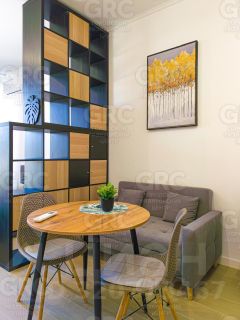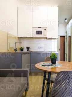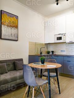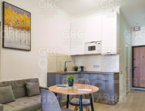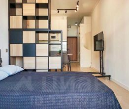 В квартире выполнен дизайнерский ремонт, никто не проживал, не сдавалась. Панорамное остекление, квартира полностью оснащена мебелью, современной бытовой техникой, вместительные встроенные шкафы, все останется новому владельцу, вам лишь нужно завезти личные вещи. Данная студия удачно зонирована, выделенно спальное место. В квартире проведен теплый пол в ванной и кухонной зоне.