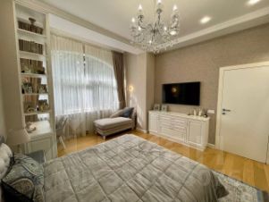 Большая площадь 100 кв.м. (3 комнаты, кухня, гардероб, 2 санузла), дизайнерский ремонт, высокие потолки, большие окна, которые выходят на три стороны. Квартира обставлена всей необходимой мебелью и техникой, оставляем всё.