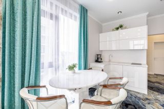 Отдельное преимущество заключается в выгодном расположении и развитой инфраструктуре самого комплекса. Здесь созданы все условия, необходимые для комфортного отдыха и быта. В шаговой доступности находится парк Дендрарий, дорога до моря занимает не больше десяти минут неспешным прогулочным шагом. Также по соседству с домом находится большое количество супермаркетов, аптек, фитнес-центров, банков и других объектов.