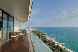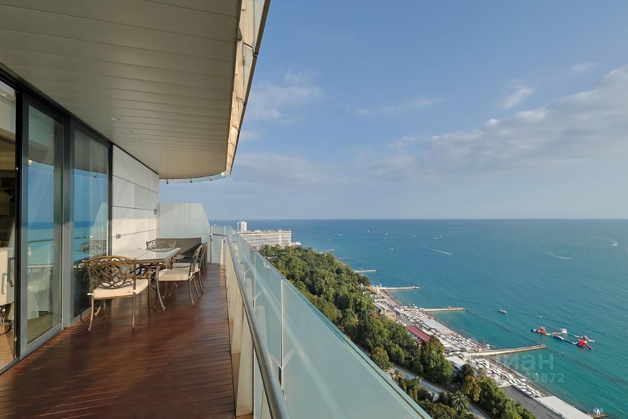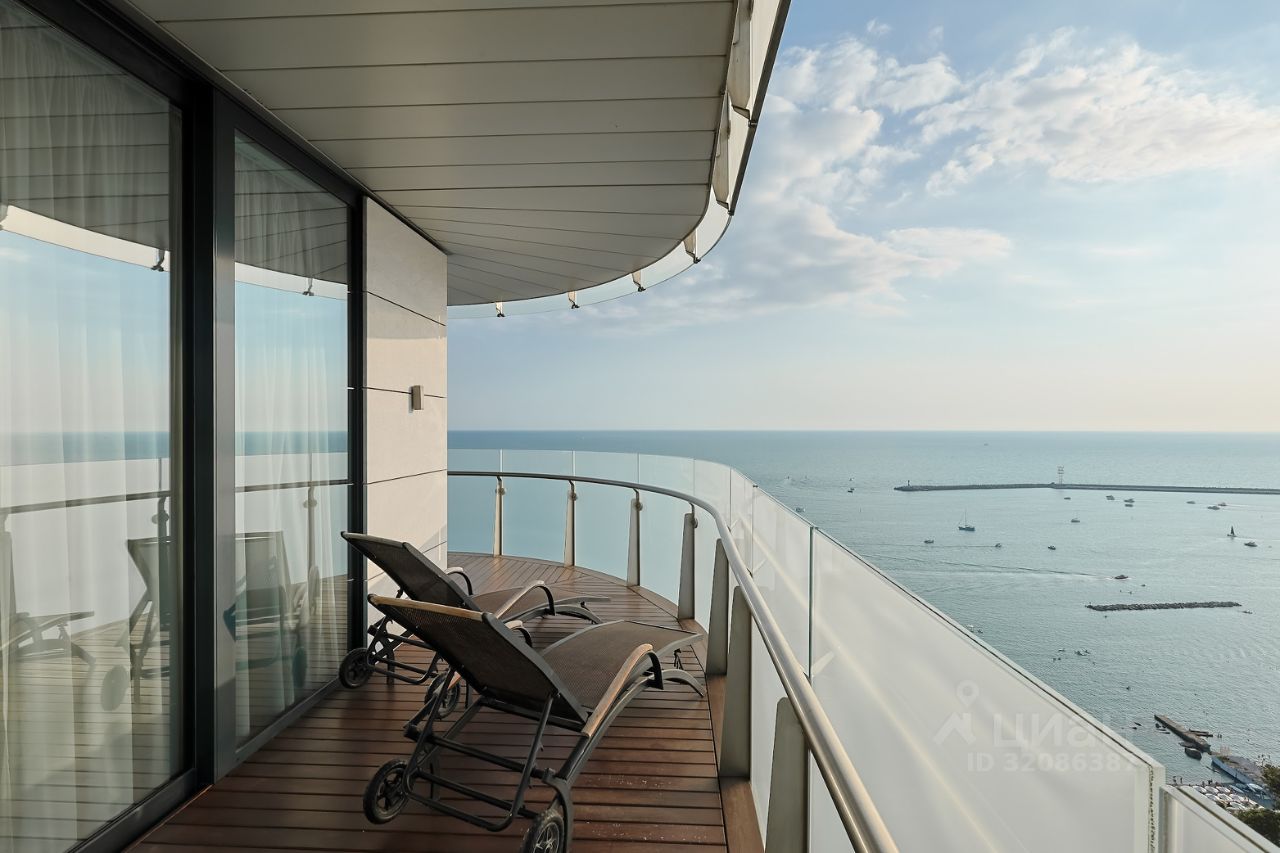 С открытой террасы открывается живописный вид на море и исторический центр Сочи. Терраса тянется по всему периметру, создавая полноценное пространство для отдыха.