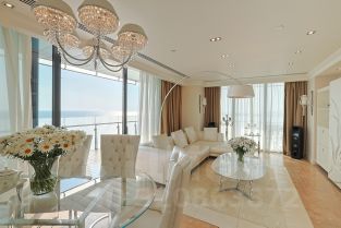 В апартаментах площадью 149,8 квадратных метра 4 комнаты, все с панорамным видом и выходом на широкую террасу: