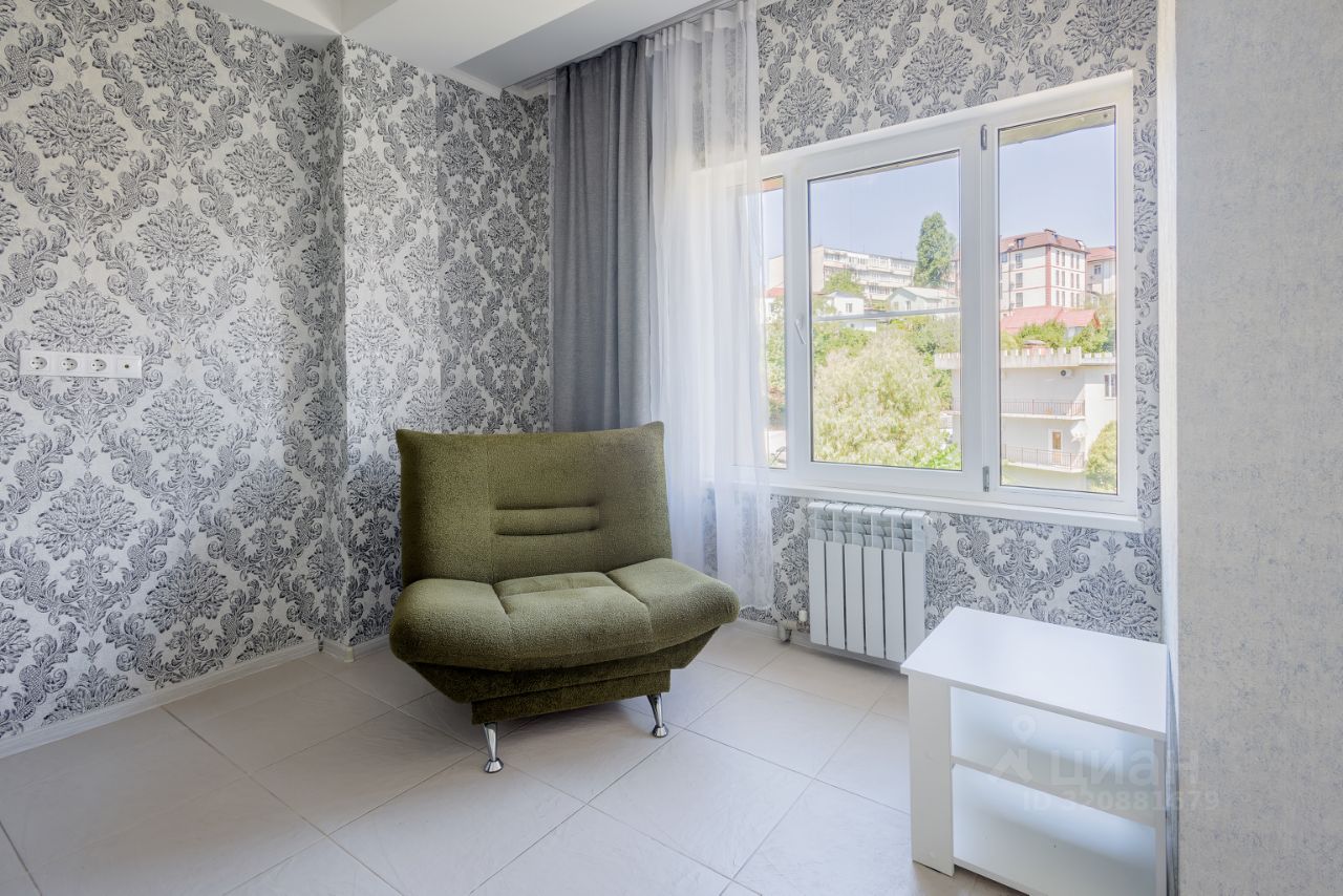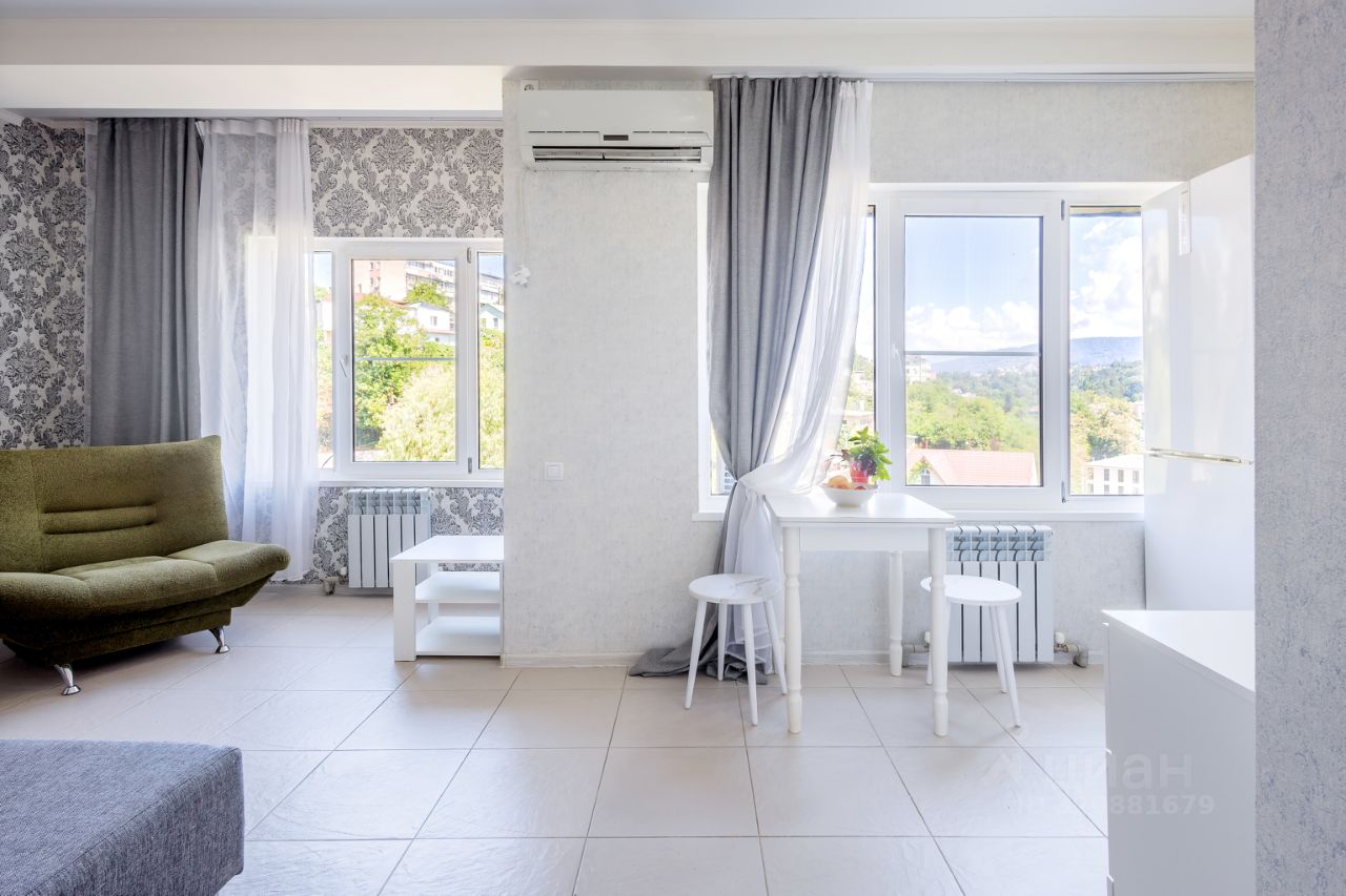 Квартира расположена на пятом этаже с видом на горы и классно зонирована. Кухня находится в торце квартиры. Также есть отдельное уютное пространство под спальное место. А между ними получается зона гостиной! Санузел совмещённый и просторный, оборудован ванной и стиральной машиной. Площадь санузла позволяет установить и раковину! Высота потолков в квартире 2,65!
