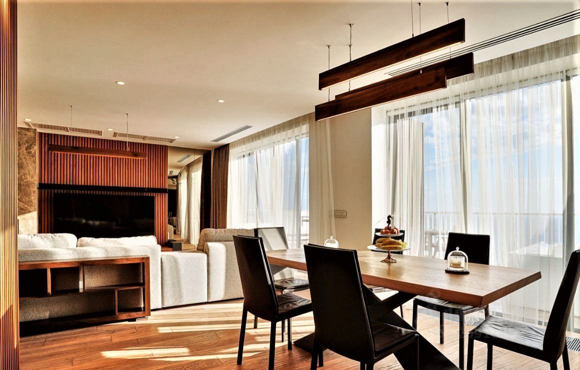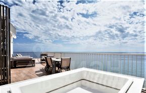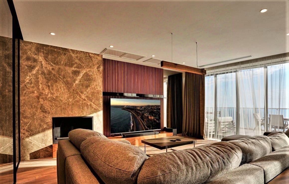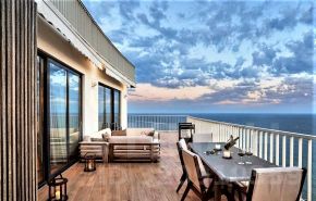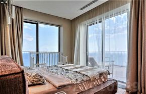 Отличная планировка: прихожая зона, 3 изолированные спальни с выделенными санузлами и гардеробными, два санузла и большая кухня-гостиная с выходом на открытую террасу с видом на горы и море, где размещена ротанговая мебель с зоной барбекю, джакузи с видом на море.