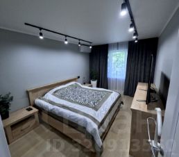 Просторная спальня с кроватью 180х200, двумя прикроватными тумбами и комодом в едином стиле. Установлен кондиционер, шторы блэкаут. Матрас Askona. Из спальни — выход в отдельную гардеробную с открытой системой хранения.