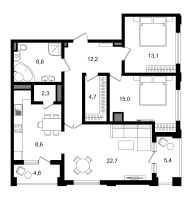 — Удобная современная планировка. 2 спальни, кухня объединена с гостиной, два балкона, два санузла. Есть кладовая и гардеробная.