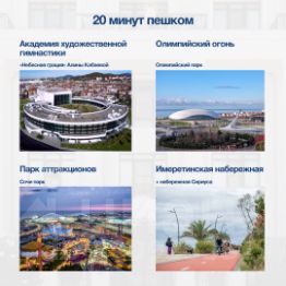 — До стадиона Фишт, Олимпийского огня и Сочи парка — 15 минут пешком.