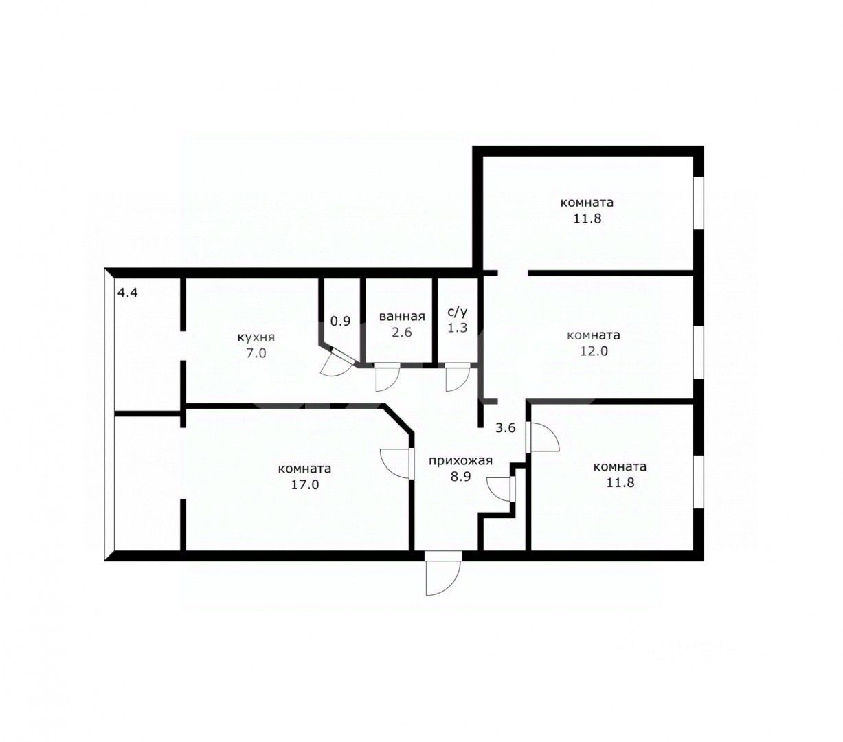 Комнаты площадью 17+11,8+12+11,2, коридор 12,5 кв.м