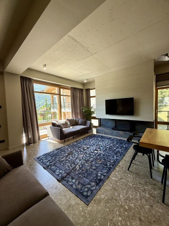Ремонт выполнен по индивидуальному дизайн-проекту от именитого дизайнера. Все материалы, мебель и техника доставлены на заказ от флагманов рынка. Панорамное остекление в пол. Прямой вид на горы.