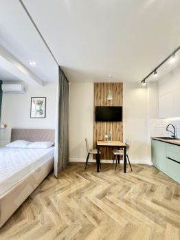 Новая большая квартира -студия с видом на море , в новом современном комплексе с развитой инфраструктурой .