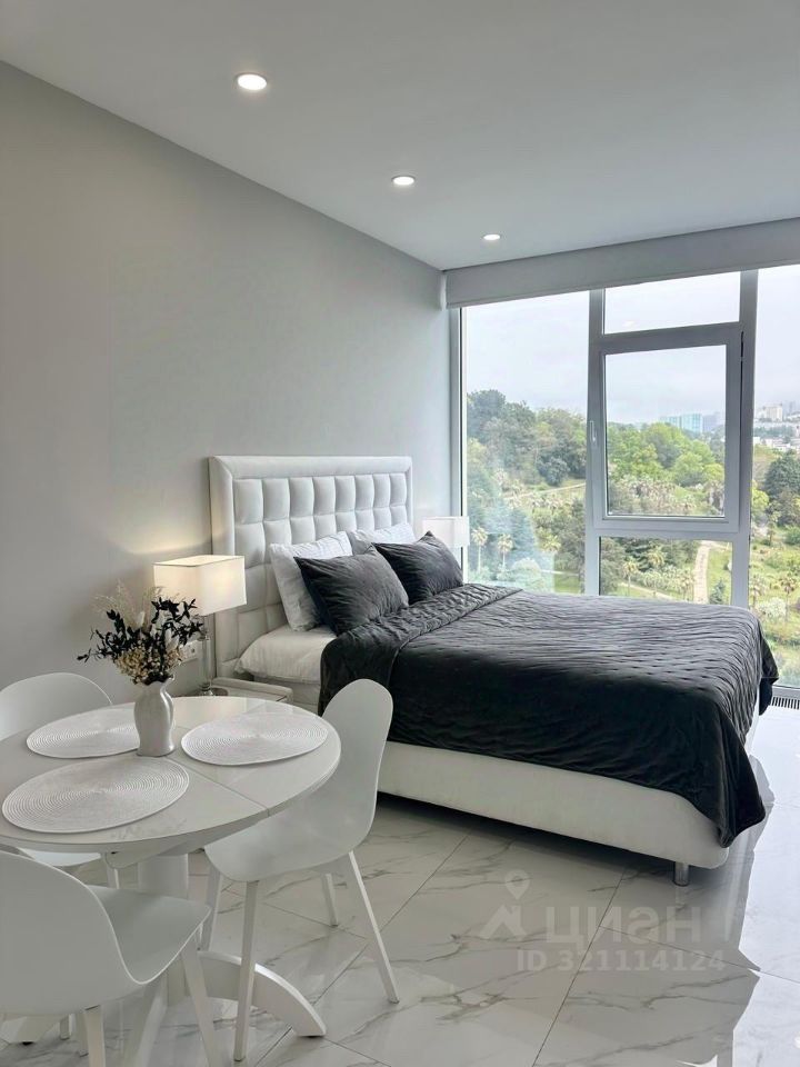 Продается стильная студия в одном из самых престижных районов Сочи — микрорайоне Светлана, на Депутатской улице. Квартира расположена на 9 этаже 18-этажного монолитного дома, построенного в 2020 году. Общая площадь квартиры составляет 25 кв. м, из которых 20 кв. м — жилая площадь. Высокие потолки 3.2 метра создают ощущение простора.