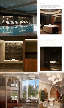 Премиальная инфраструктура и сервис: консьерж-сервис, современный Спа-комплекс, ресторан высокой гастрономии от известной сети, бутики, медицинский консьерж-сервис и конференц-зал, многоуровневая Парковка и спортивный клуб, зоны активного и тихого отдыха. В комплексе 2 основных здания, от 9 до 13 этажей. Площадь номеров от 43 до 135 метров. Все номера сдаются под ключ с премиальным дизайном отделки со встроенной техникой.