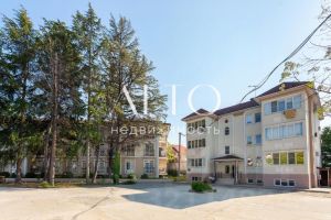 Шикарная благоустроенная территория двора с фонтаном и детской площадкой.