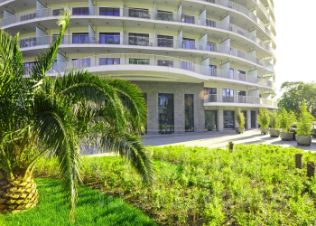 АК Актер Гэлакси — красивый, современный жилой комплекс с оригинальной архитектурой, класс застройки — элит. Дом построен на Курортном проспекте, в экологически чистом и зеленом микрорайоне Приморье (Хостинский район).