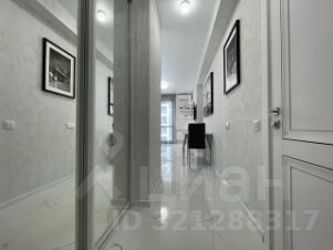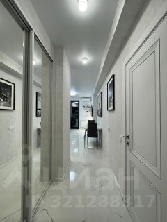При входе вы попадаете в просторный коридор, отделанный плиткой с венецианским мрамором. Здесь установлены зеркальные двери, которые визуально увеличивают пространство. Коридор ведёт в основное помещение, где располагается современная кухня, укомплектованная качественной техникой и стильными фасадами.