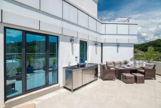- Высокие потолки и панорамные окна обеспечивают естественное освещение и ощущение просторности.