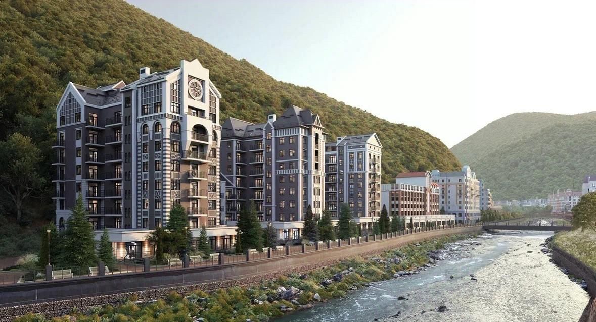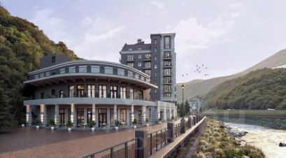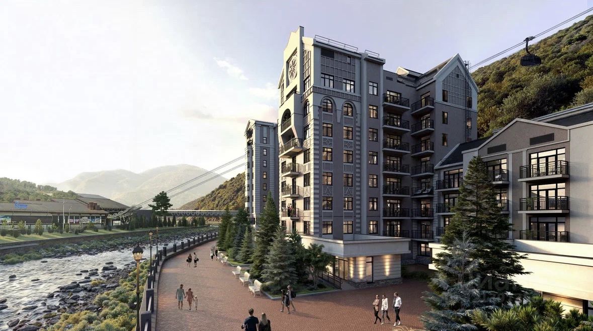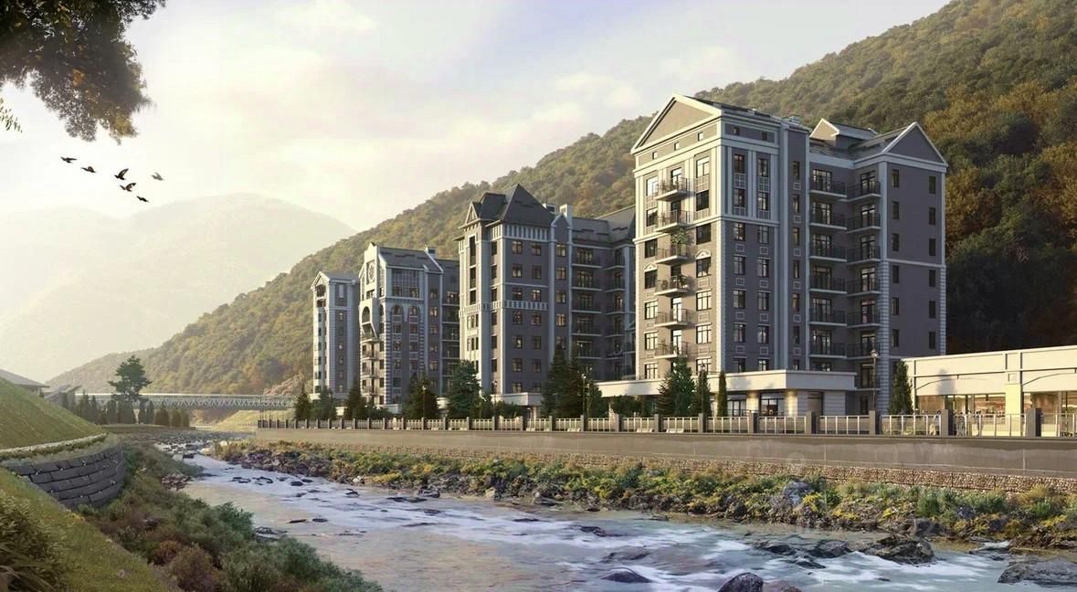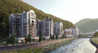 Комплекс расположен на главном променаде всесезонного курорта — на набережной реки Мзымта, в окружении лучших ресторанов, стильных бутиков и всего в нескольких шагах от канатных дорог.
