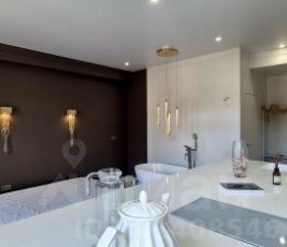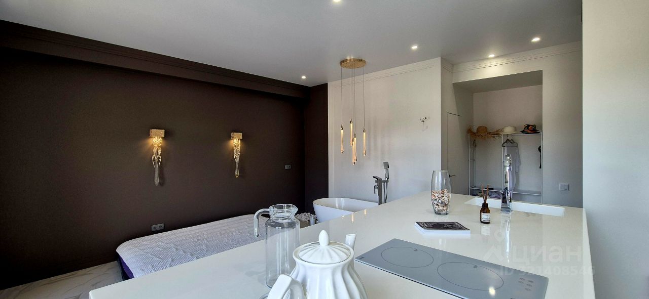 Представьте утро: вы просыпаетесь в просторной комнате, где за вашей двуспальной кроватью открывается вид на собственную ванную зону с дизайнерским смесителем, растущим прямо из пола. Вы готовите кофе на островной кухне премиум-класса, с барной стойкой для импровизированных завтраков. И вместо скучной стены — огромное зеркало, в котором отражается человек, точно знающий себе цену.