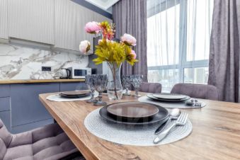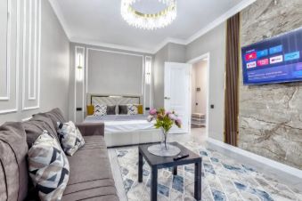 Квартира выполнена в дизайнерском стиле, что придаёт ей особенный шарм. Просторная жилая площадь позволяет удобно разместиться и дает возможность для экспериментов с интерьером. Кухня занимает оборудована всем необходимым для комфортной готовки. Совмещенный санузел оформлен в современном стиле и оснащен качественной сантехникой. Также в квартире есть один балкон, где можно насладиться свежим воздухом и видом на город.