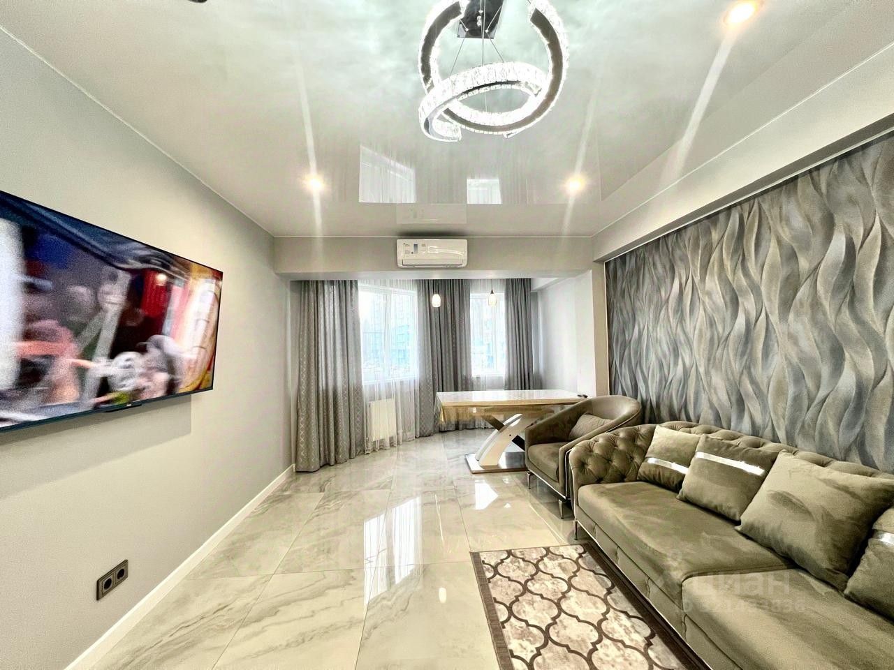 Квартира общей площадью 84.7м2, распланирована в три изолированые спальни, просторную кухню гостиную, квартира полностью готова к проживанию и оборудована всем необходимым для жизни и отдыха.