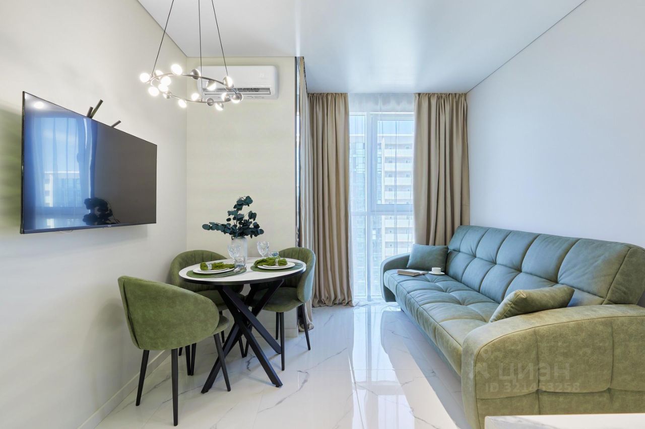 Продается стильная студия в Сочи, в микрорайоне Бытха, на Ясногорской улице. Квартира расположена на 16 этаже нового 19-этажного дома, построенного в 2023 году. Общая площадь — 21.2 кв. м, жилая — 15 кв. м. Высокие потолки (3 метра) и окна, выходящие на улицу, делают пространство светлым и просторным. Удобная планировка включает совмещенный санузел и лоджию.