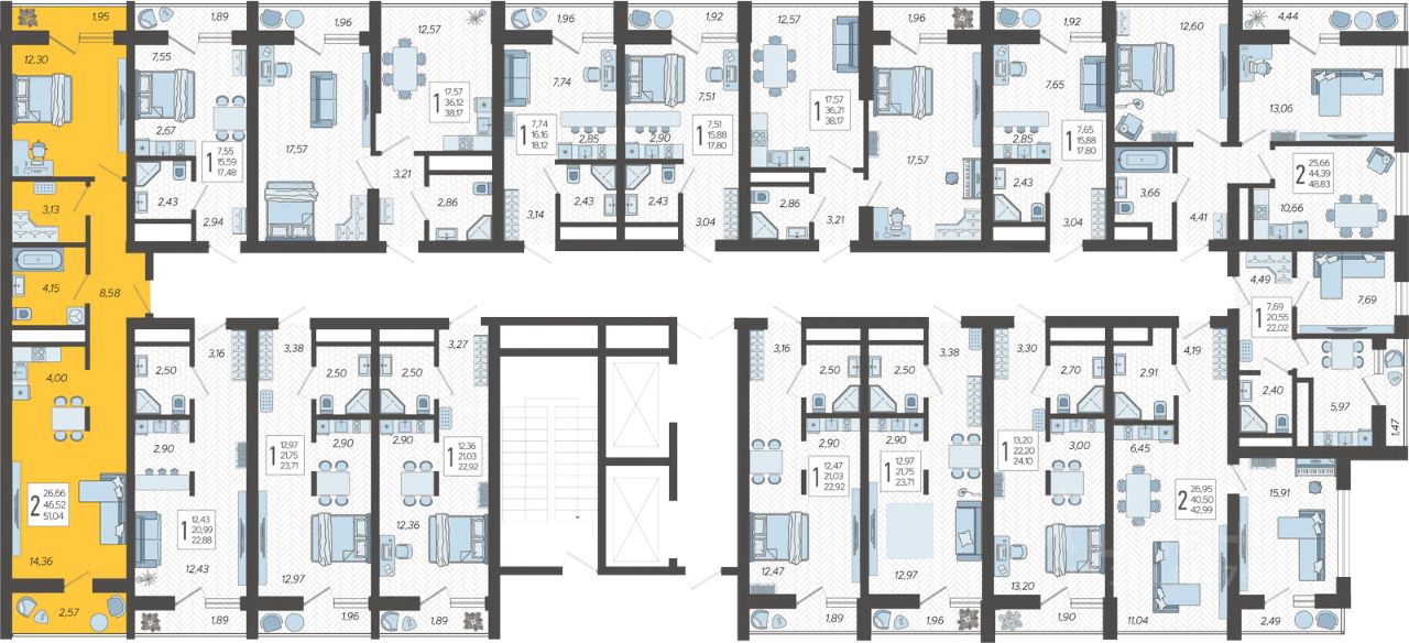 Продается 2-комнатная квартира в новостройке ЖК "Кислород" Литер 12. Общая площадь квартиры - 51.04 кв. м., этаж 9 из 19. Преимущества квартиры: квартира-бабочка, большая гардеробная, две лоджии, кухня-гостиная Без отделки, но с возможностью заказать отделку.