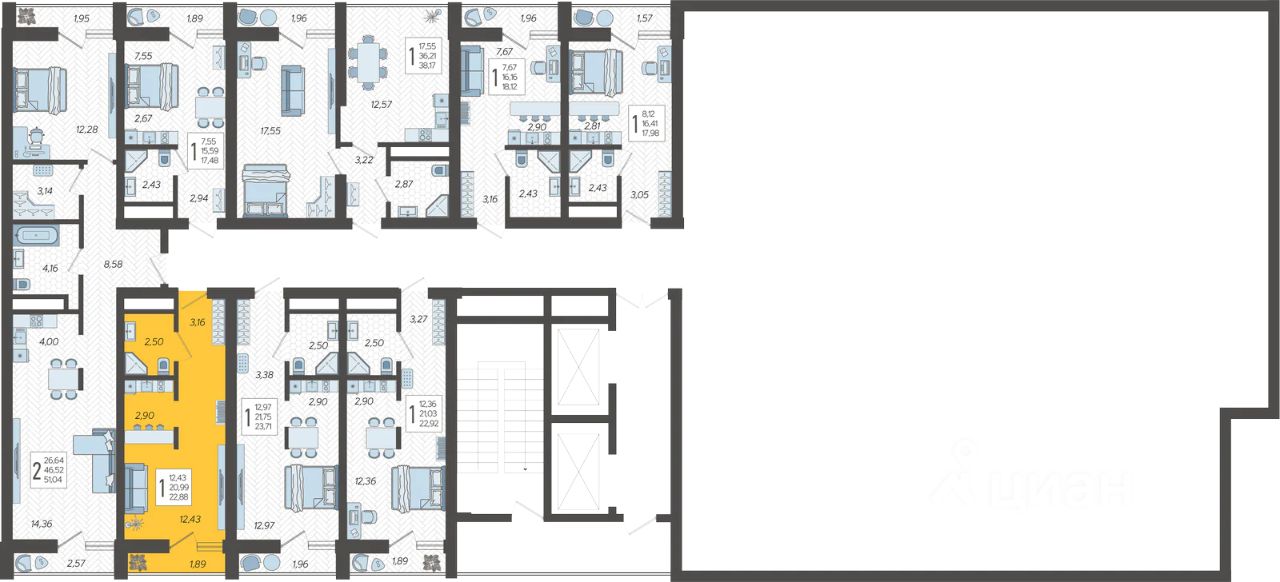 Продается студия в новостройке ЖК "Кислород" Литер 12. Общая площадь квартиры - 22.88 кв. м., этаж 19 из 19. Без отделки, но с возможностью заказать отделку.