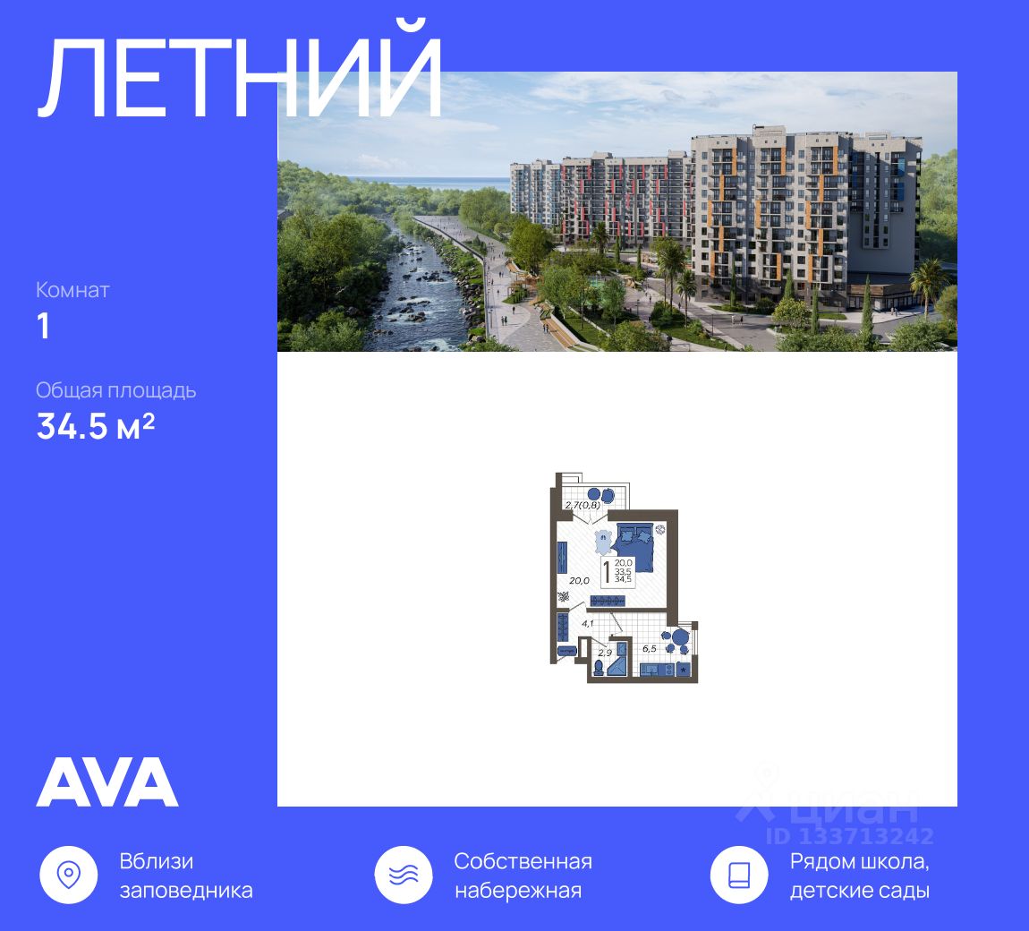 Жилой комплекс "Летний" расположен в ущелье реки Кудепста. В пешей минутной доступности детские сады и школы. Удобный выезд к железнодорожному вокзалу и аэропорту. За 15 минут можно доехать до Олимпийского парка. ЖК Летний - это комплексная застройка из семи 12-этажных домов, который находится в долине реки Кудепста, с собственной набережной, видом из окон на море и горы, многоуровневым паркингом с эксплуатируемой кровлей, современными детскими и спортивными площадками. Рядом расположен заповедник, где берут начало туристические тропы на самые красивые водопады региона, единственная в России тисо-самшитовая роща.