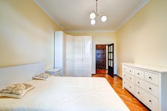 Элитный район "Благодать", среди роскошных особняков настоящий "сталинский" дом с высокими потолками, широкими стенами, грамотной планировкой, с видом на море. 2 отдельные спальни, кухня, гостиная.