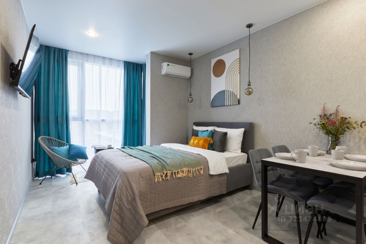 Продается стильная студия в современном жилом комплексе Сочи Парк. Квартира расположена на 17 этаже 20-этажного дома. Высокие потолки 3 метра и окна, выходящие на улицу, создают ощущение простора и света.