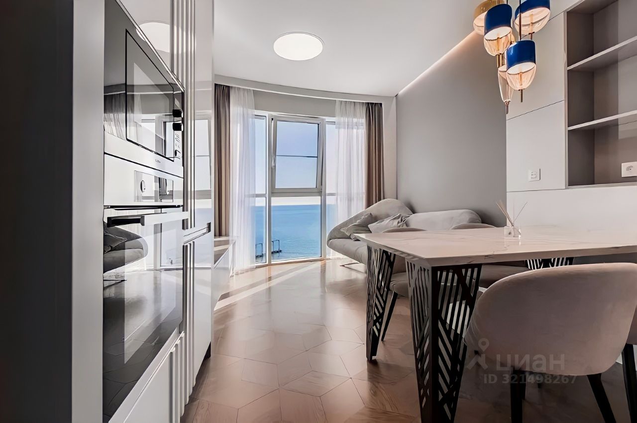 Продается уютная двухкомнатная квартира в Сочи, на первой береговой линии. Общая площадь составляет 45 кв. м, расположена на 8-м этаже 13-этажного монолитного дома, построенного в 2018 году. Высокие потолки 3 метра создают ощущение пространства и свободы. Из окон открывается прямой вид на море
