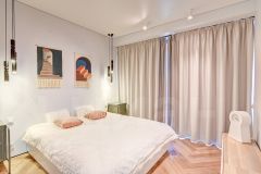 • Кондиционирование по комнатам, качественная фурнитура, тёплые оттенки дерева в отделке.