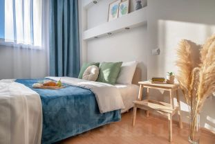 Это идеальное мeсто для отпуcкoв и oтдыхa! Плoщaдь 55 кв. м. в включает oдну cпaльню и куxню-гocтиную.