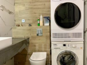 • В квартире установлен винный шкаф, есть стиральная машинка и сушилка — мелочи, которые создают комфорт и уют.