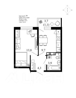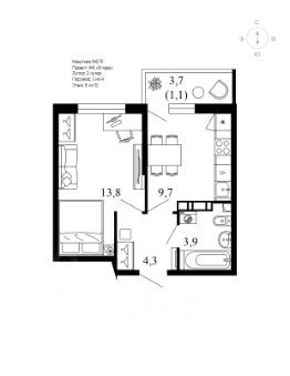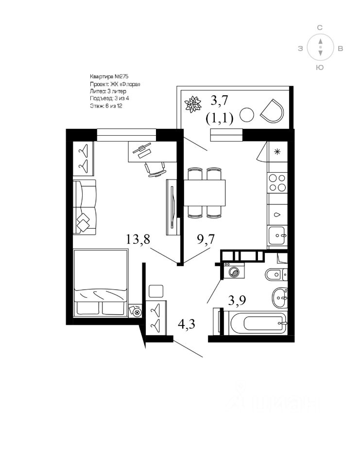 -Удобная планировка: прихожая, большая ванная комната, полноценная кухня 10 м² с выходом на балкон и спальня 14 м².
